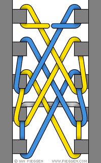 Une autre méthode de laçage décorative utilisée pour les bottes militaires, le lacet se faufile en angle ce qui crée un tissage en toile.