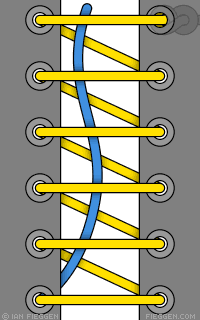 C’est une alternative au nœud de lacet d’une seule main. Ce laçage commence en haut par un nœud et va vers le bas en zigzagant. Ce qui élimine la nécessité de faire un nœud en laissant un bout du lacet libre. La friction des œillets est suffisante pour garder le laçage assez serré.