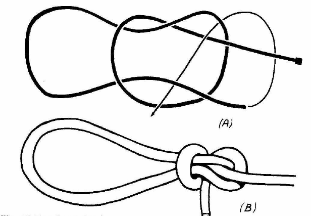 Très populaire depuis 1870, ce nœud est aussi efficace sur des fils en nylon que sur ceux faits à cette époque. On peut le nouer facilement et rapidement avec un peu de pratique (fig. 46A-B) mais il ne convient pas aux cordes car il se bloque.