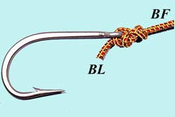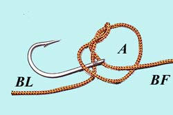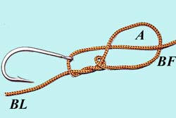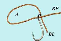Passer le Brin Libre dans l'œillet et le ramener le long de l'hameçon pour créer la boucle A. |