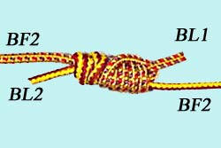 Lubrifier et serrer ce premier nœud en tirant sur BL1 et BF1.