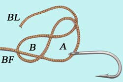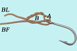 Passer le BL dans l'oeillet, faites la boucle A, puis ramener le BL dans A, ( vous voyez bien le 8). |