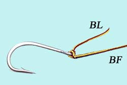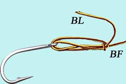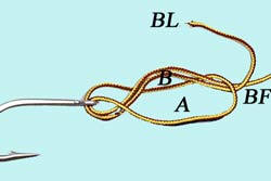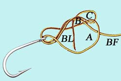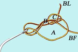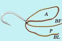 Doubler la ligne sur 15cm, la faire passer dans l'oeillet, boucle A. |