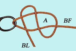 Passer le Brin Libre dans l'oeillet, puis dessous le Brin Fixe pour créer la boucle A. |
