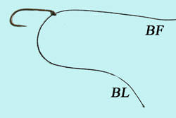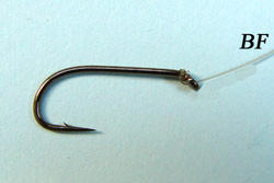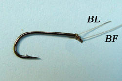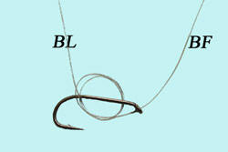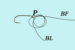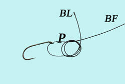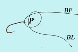 Couper le BL. Le fil ressort en droite ligne de l'oeillet, pas de spires de fil devant l'hameçon.