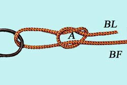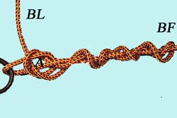Passer le BL dans l'œillet, puis faire un nœud simple A autour du Brin Fixe. |