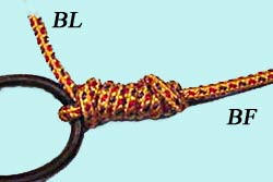 En s'éloignant de l'hameçon, enrouler le Brin Libre 4 fois autour du BF. |