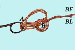 Faire passer l'émerillon/leurre ou hameçon à l'intérieur de la boucle A. |