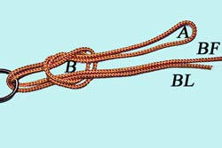 Surtout utilisé pour les émerillons, il peut l'être aussi pour des leurres et des hameçons. Garde 95% de la force rupture. Un très bon nœud pour les fils tressés et pour les nylons ayant tendance à glisser.