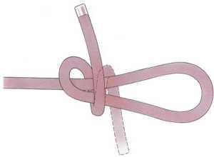 On sert ensuite le noeud en tirant sur le dormant de façon à resserrer la ganse qui sort du noeud. |