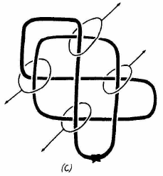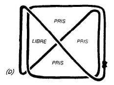 Effectuez une petite rotation du poignet pour lancer la corde d'une autre façon et vous l'arrangez pour former le rectangle de la même manière que précédemment (fig. C-D), et pour qu'il paraisse identique.