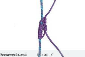 Attention : il est recommandé de faire au minimum 7 tours autour de la corde principale. De même la cordelette doit avoir un diamètre d'environ 7mm. Ensuite serrer les boucles ainsi que le noeud de chaise, afin d'éviter que le noeud ne prenne beaucoup de place sur la corde principale, une fois ce dernier sous tension.