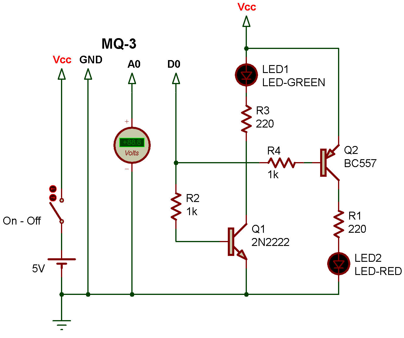 The MQ-3 sensor digital output (DO) can directly drive a NPN transistor