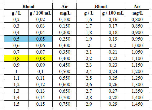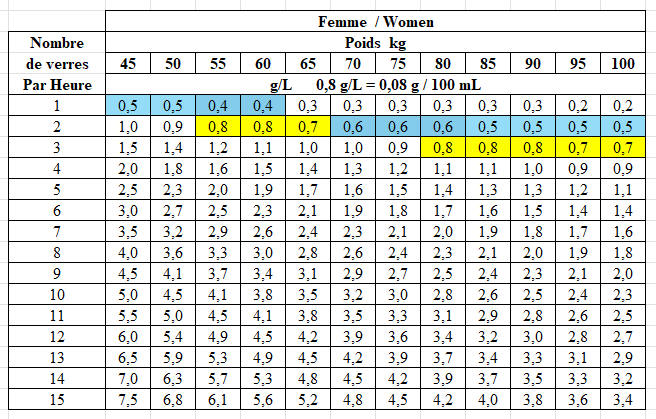 Taux d'alcoolémie BAC / Blood Alcohol Concentration BAC