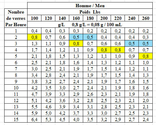 | 0.40 | 0.08 | Limite légale (QC/USA/UK) |