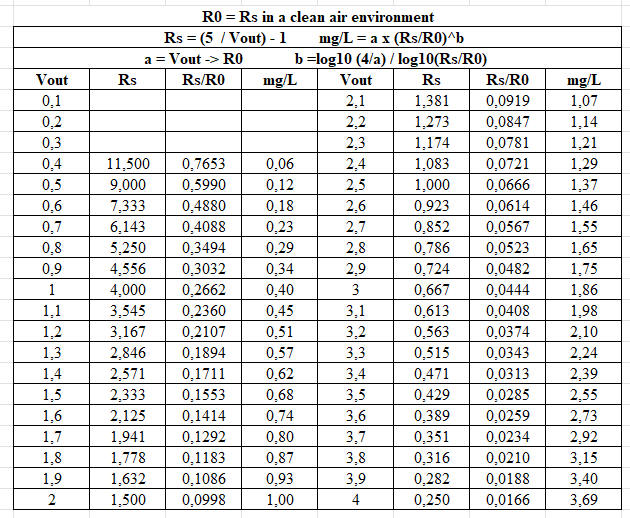 b =log10 (4 mg/L / a) / log10(Rs/R0) -> Rs/R0 -> pour/for Vout -> 4 V = 0,0162