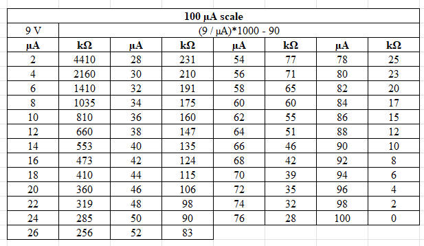This means that a resistance will cause a deflection of 500 µA (0.5 mA). |