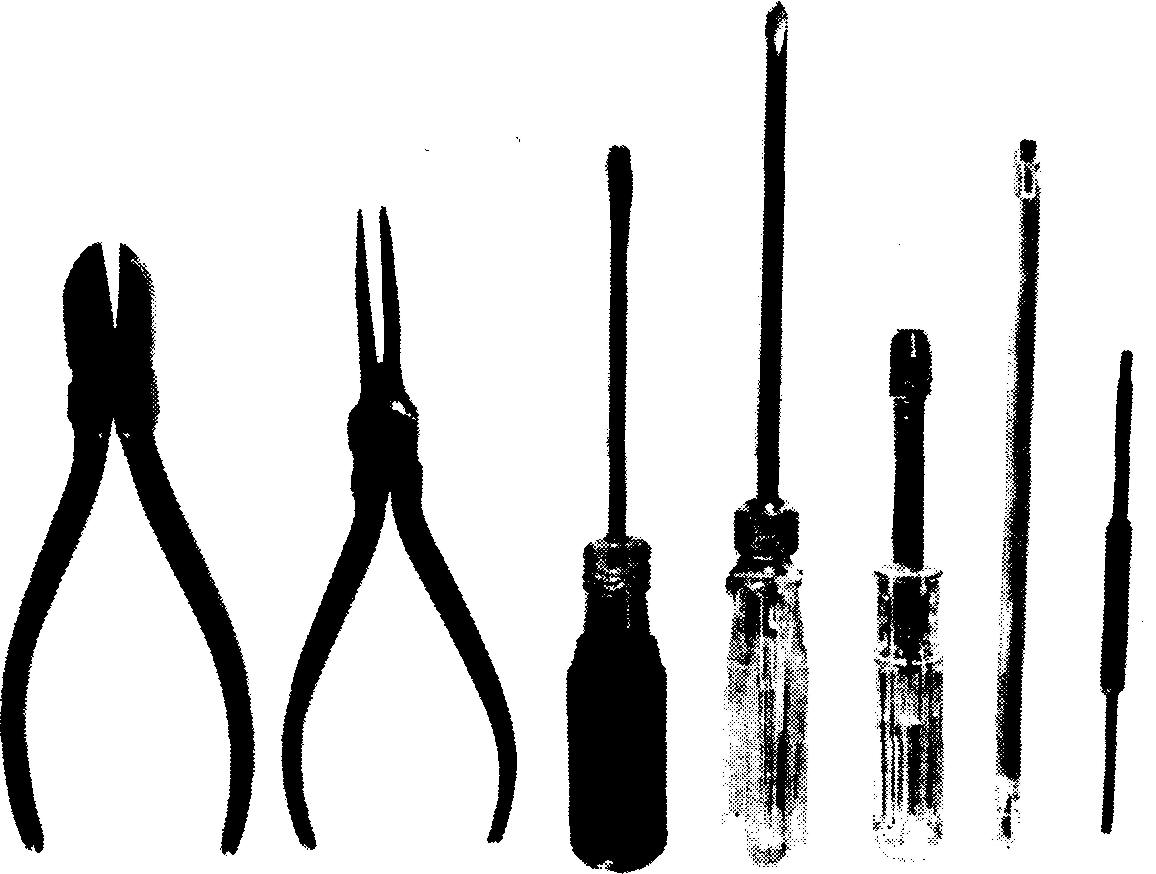 En plus des outils habituels des ateliers, l'utilisation d'un appareil électronique nécessite aussi des pinces à long bec, ou à bec mince pour couder l'extrémité d'un fil, des pinces coupantes en biais pour couper les fils, une clé à tube de 6,35 mm pour les boulons à tête hexagonale de 6,35 mm, et un tournevis cruciforme.