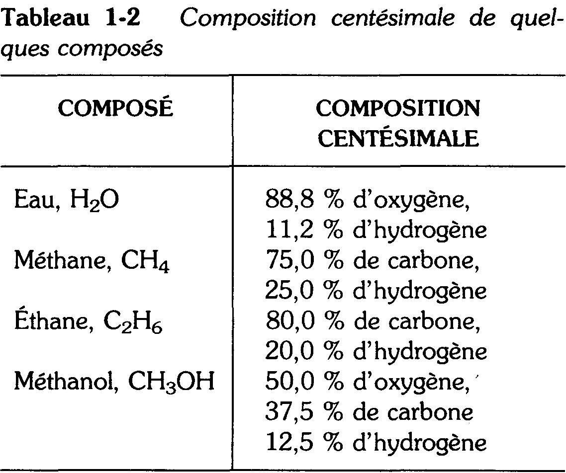Le tableau 1-2 donne quelques exemples de compositions centésimales.