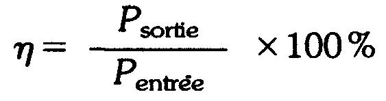 puissance de sortie sur puissance d'entrée multiplié par 100 %, soit: