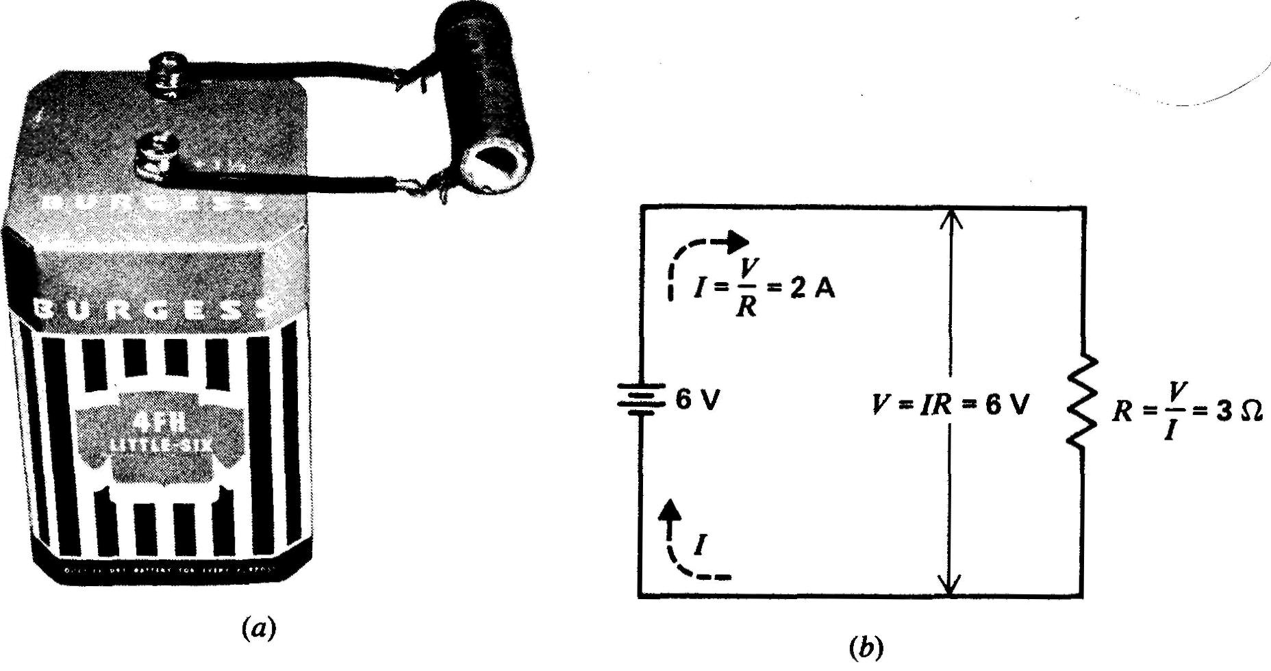 En se reportant à la figure 2-2, on voit que la valeur de la tension aux bornes de R doit être égale à V puisque la résistance est branchée directement aux bornes de la batterie.