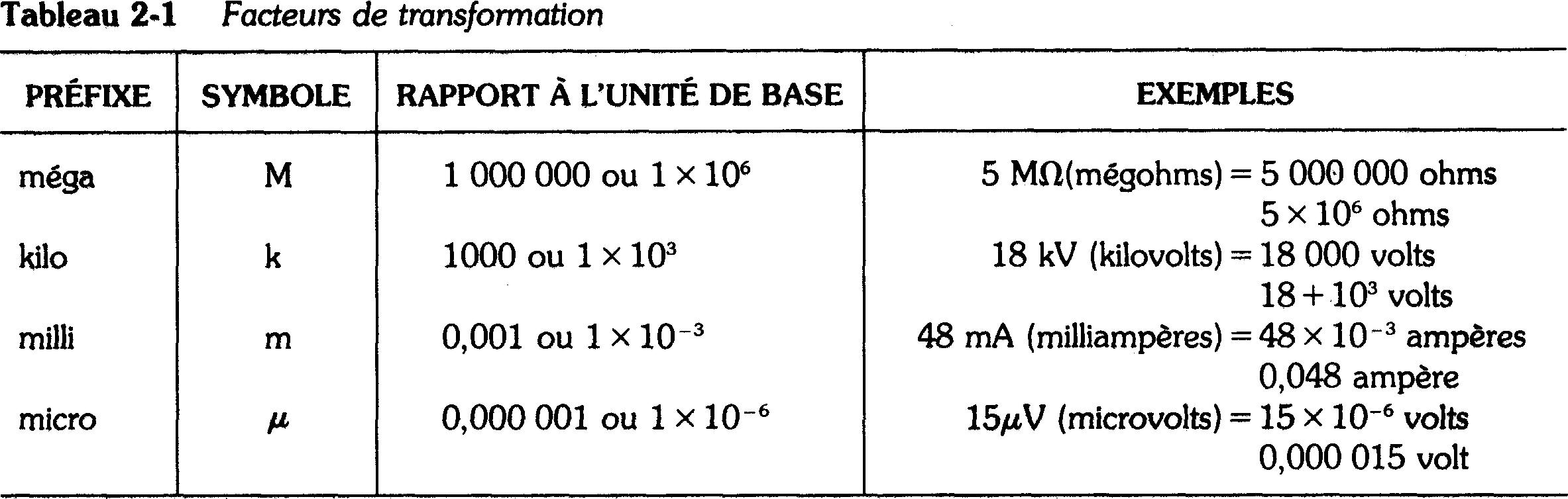 9. Le tableau 2-2 résume les unités pratiques dans la loi d'Ohm.