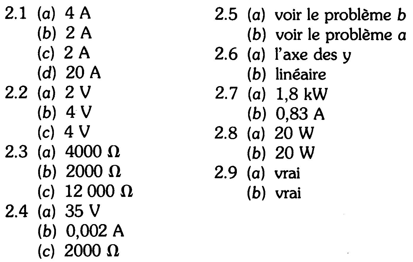 À la figure 2-2, R est égal à 3Ω puisque la tension de 6V appliquée aux bornes de la résistance produit la circulation d'un courant de 2 A dans celle-ci.
