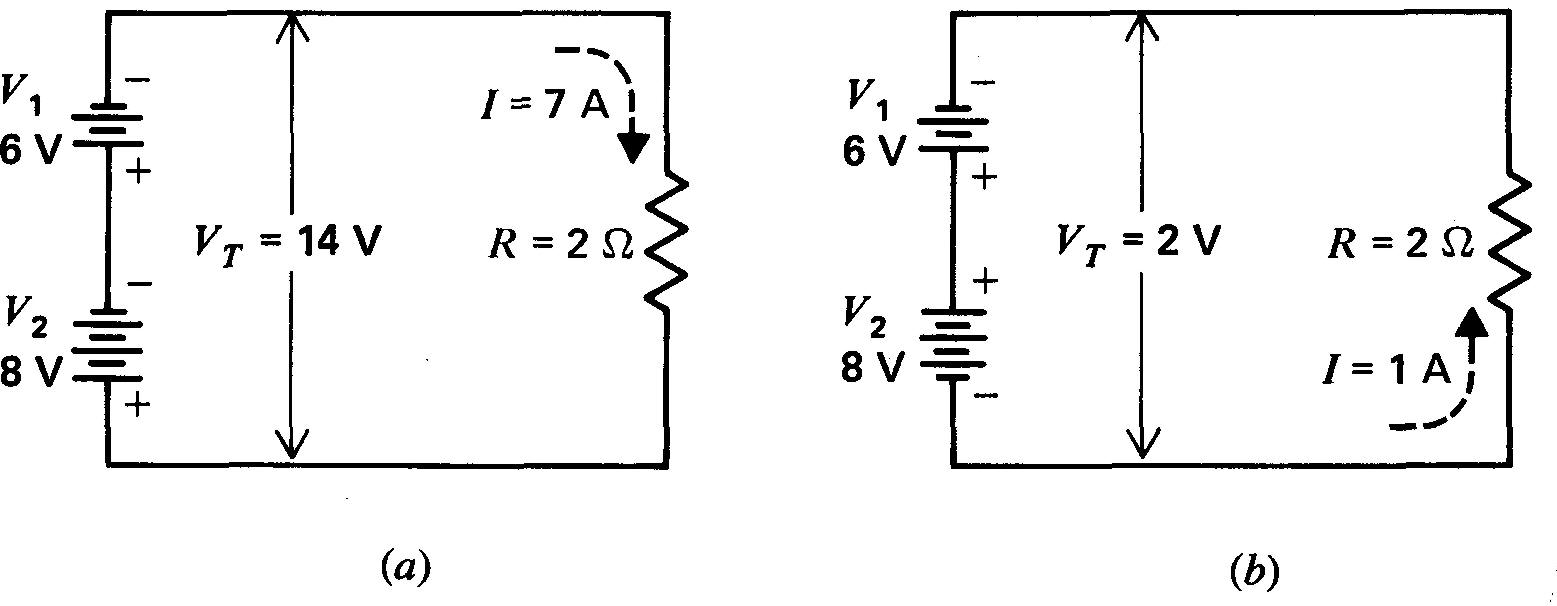 7. Des tensions en série conjonction s'ajoutent; des tensions en série opposition se retranchent.