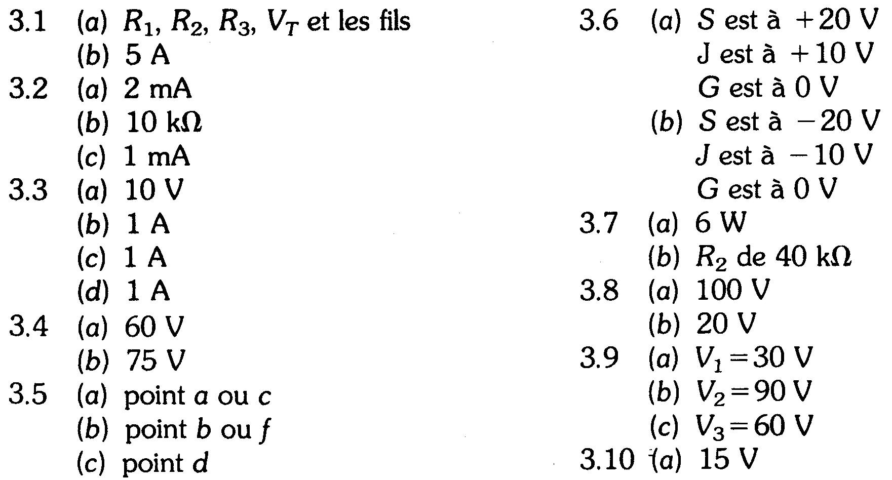 2. Sur la figure 3-3c, si le courant qui traverse R5 est de 1 A courant qui traverse R3 doit être de
