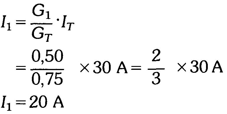 On aura, pour l'exemple illustré à la figure 6-3, dans lequel IT = 30 A, R1 = 2Ω et RΩ = 4Ω: