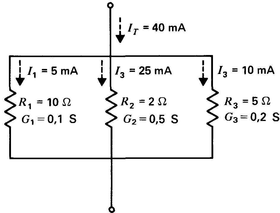 La meilleure méthode, cependant, est de recourir aux conductances en parallèle, puisque I et G sont directement proportionnels, comme il est expliqué dans la section suivante.