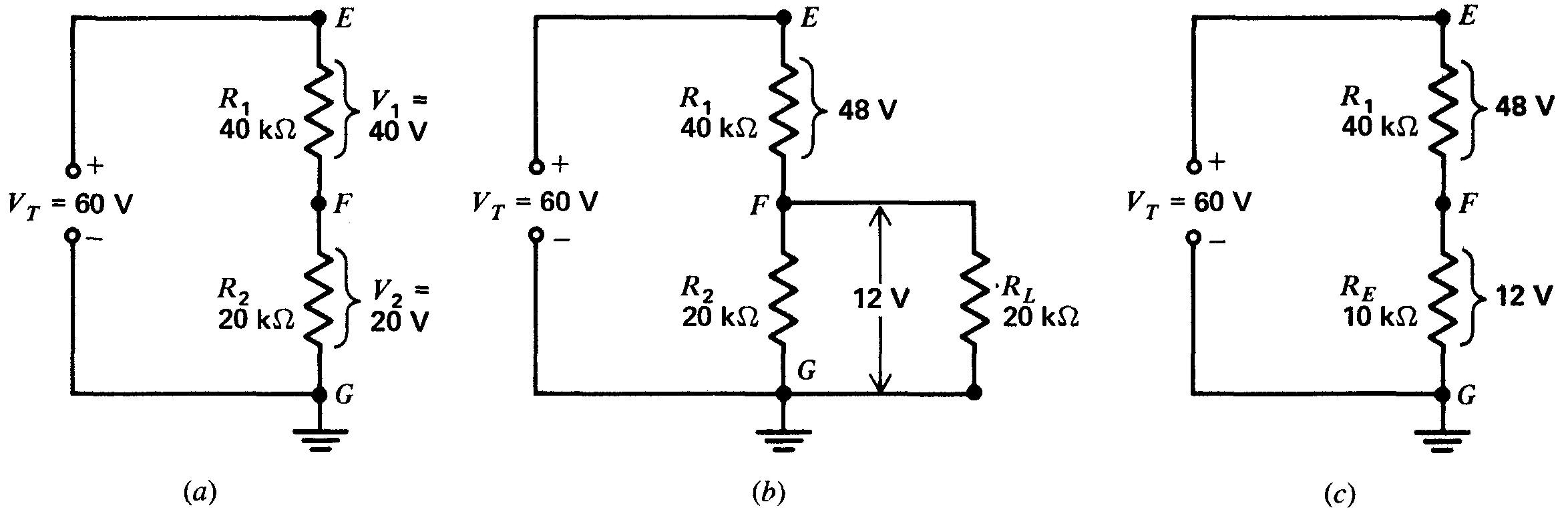4. Un diviseur de tension série comporte souvent une prise d'alimentation d'une charge en parallèle, comme l'illustre la figure 6-6. L'existence d'un courant de charge réduit la tension de la prise.