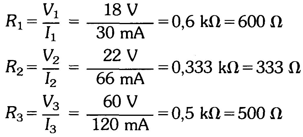 Calcul de chaque R Nous pouvons maintenant calculer les résistances R1, R2 et R3 par le rapport V/I pertinent.
