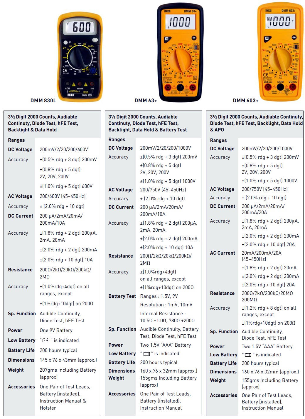 | 2 000 | 1.999 = 2V | 19.99 = 20V | 199.9 = 200V | 1999 = 2000V |