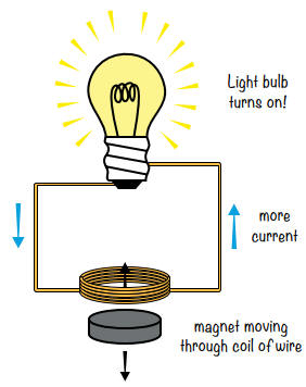 Par exemple, pour créer de l'électricité à partir du vent, on peut connecter la bobine à une éolienne de sorte que, lorsque le vent souffle, elle tourne.