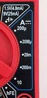 Le fil rouge est le fil positif, le fil noir le fil négatif, et le grand cadran central indique au multimètre la tension à mesurer.