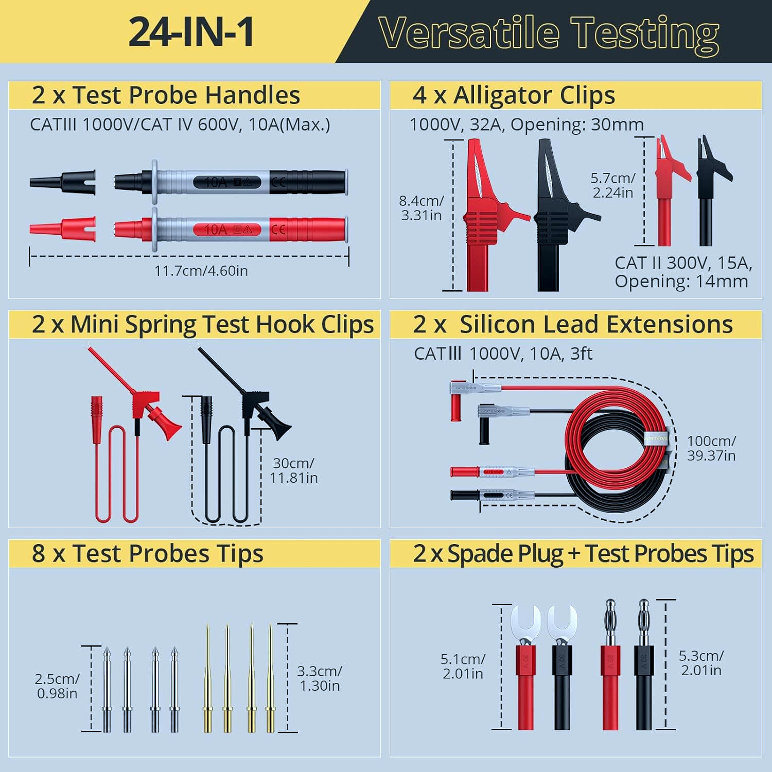 On peut acheter des fils pour multimètre avec des adapteurs différents