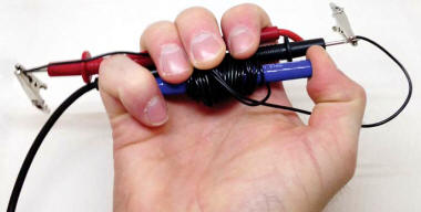 Deux pinces crocodiles pour connecter le multimètre à la bobine.