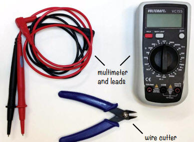 Ce multimètre doit pouvoir mesurer des tensions alternatives très faibles, jusqu'à 0,01 V ou moins. Les multimètres Jameco n° 2206061, Bitsbox n° TL057 ou Rapid Electronics n° 55-6662 sont adaptés.