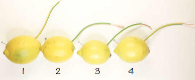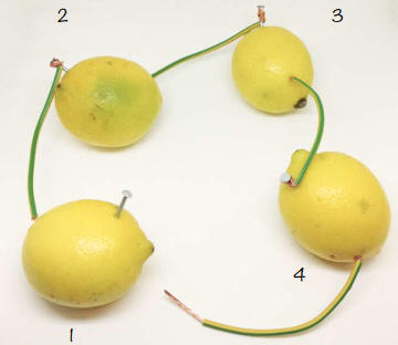 Alignez vos citrons, fils de cuivre pointés vers la droite, et numérotez-les de 1 à 4, en commençant par la gauche.