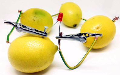 Une pile citron ne peut pas produire beaucoup d'électricité. Il faut donc la connecter à un appareil peu gourmand en énergie pour observer l'effet.