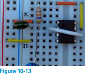 Sur la figure 10-20, les composants qui déterminent la durée, ou fréquence d’oscillation, sont désignés par R1, R2 et C.