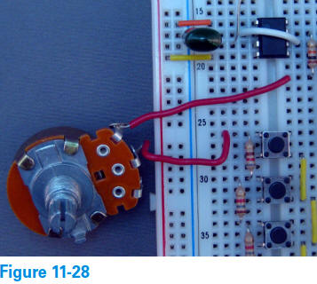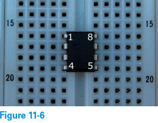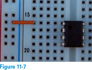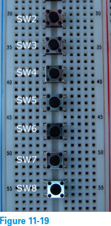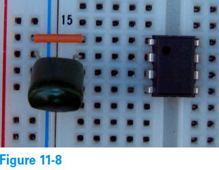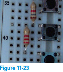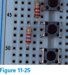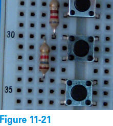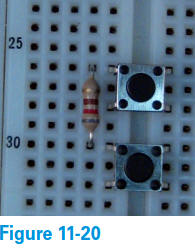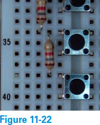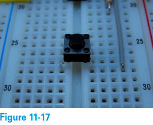 Notez que le bouton-poussoir illustré à la figure 11-1 possède quatre broches.