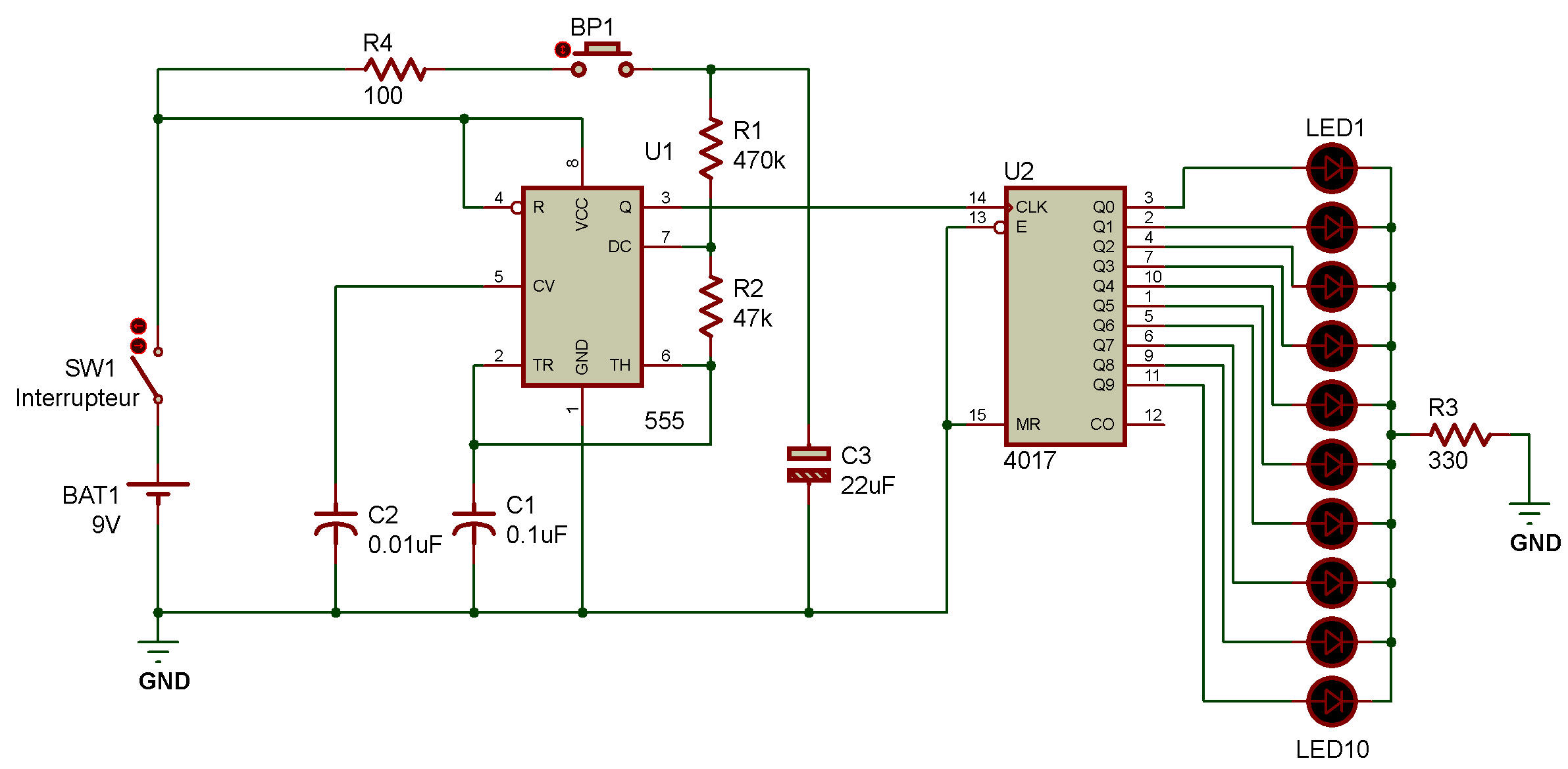 Dans cette section, je vous présente le schéma du chenillard lumineux et
