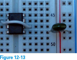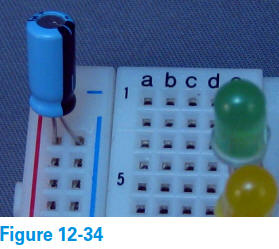 Insérez le condensateur électrolytique de 4,7 µF dans la plaque d'essai, comme
