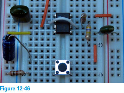 Ensuite, lorsque vous relâchez le bouton-poussoir (pratiquement immédiatement après l'avoir enfoncé), le condensateur de 22 μF n'est plus connecté à la batterie et se décharge à travers les résistances de 47 kΩ et 470 kΩ.