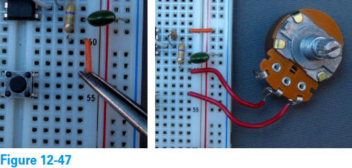 temporisation — la résistance de 470 kΩ (R1), la résistance de 47 kΩ (R2) et le