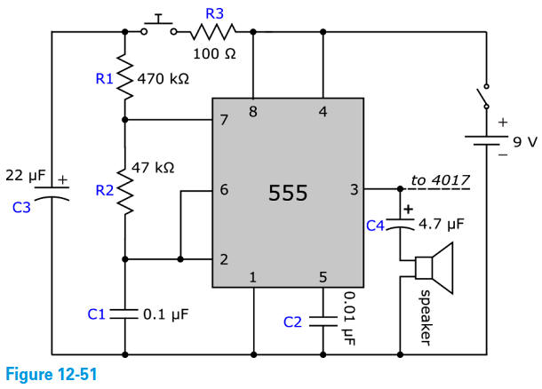 déclencher le compteur décimal 4017 ; la broche 3 de la minuterie 555 est donc