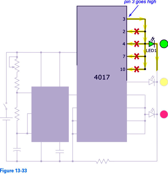 La figure 13-32 présente le schéma du circuit original du feu tricolore.