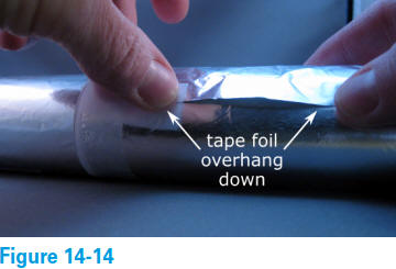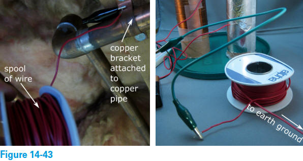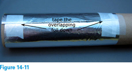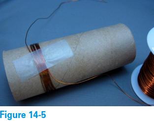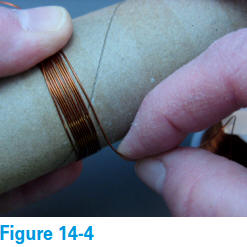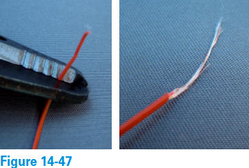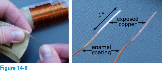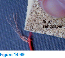 J'ai posé mon fil sur une table, je l'ai maintenu en place avec mon doigt et j'ai frotté doucement le papier de verre dessus, toujours dans le même sens. (Voir figure 14-49.)